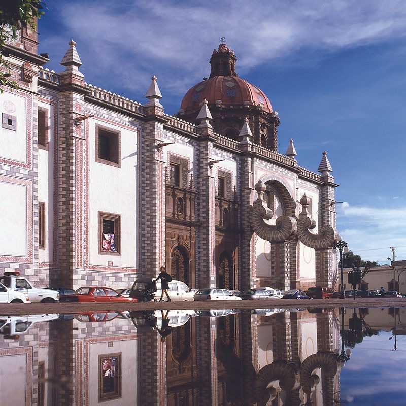Also known as the San Felipe Neri Oratory, is a prominent religious and historical site in the city. Built between 1786 and 1804, it features a blend of Baroque and Neoclassical styles. Originally an oratory for the San Felipe Neri order, it became a cathedral in 1921. Its austere pink stone façade contrasts with a richly decorated interior. The cathedral stands as a symbol of faith and colonial heritage in Querétaro.